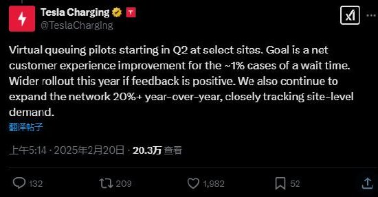 该公司在X上的一篇帖子中说:“从第二季度开始,在选定的地点进行虚拟排队试点。”该公司是在回应一段视频,视频中人们在一个超级充电站争论谁是下一个排队的人。